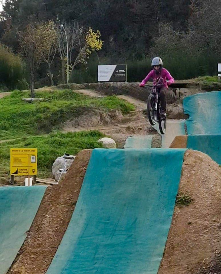 The mainline is intimidating, it’s much steeper than anything else I have ridden, and once you are on your way up that take off there is no backing out. I rely on friends and people who are better jumpers than me to tell me if I have the right speed and ability to clear something. So with a lot of encouragement, I dropped in to the line, and after a couple of dummy runs to judge speed, I went for it. Now I am the first to admit I have commitment issues when it comes to clearing new features. I over think them, and chicken out 10 times before I am sure I can do it. The trick that works for me is to try and forget about the landing, or what to do in the air (I have enough experience on a bike that my muscle memory tends to take care of that), all I do is focus on the lip of the jump, if I can just aim for the middle of the take off everything else falls in to place. And it did. Once I have cleared a jump for the first time, all that fear lifts, and then the second one in the line came quickly after.