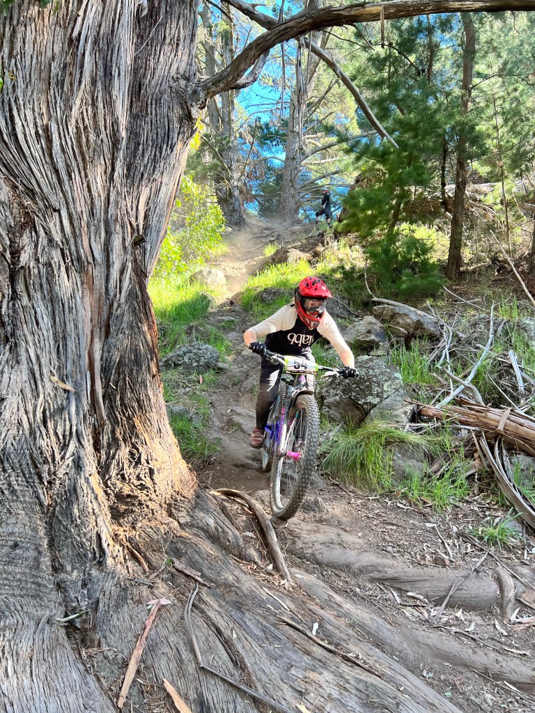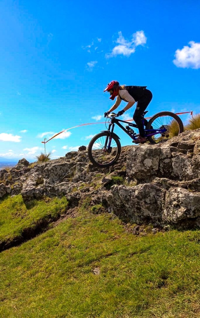 Stage 2 – Lava Flow Another long peddled transition from the bottom of the Adventure park, up the blue trail (Loess Rider), and then across Victoria Park, and along the Bowenvale Traverse trail, to the start of Stage 2. This unique trails was formed by volcanic lava flowing down the hill, leaving rough and janky rocks protruding all over the place. This hectic trail was very confusing with wide taping and lots of line options made it quite difficult to figure out where to go. I managed to pick some good lines in the first half, unfortunately I didn’t notice some rocks in the grass, and I caught my bash guard which caused my chain to jump off mid race. I stopped and put it back on, but from there I struggled to get back up to speed and find my flow, being bucked around by all the lumpy volcanic rock.