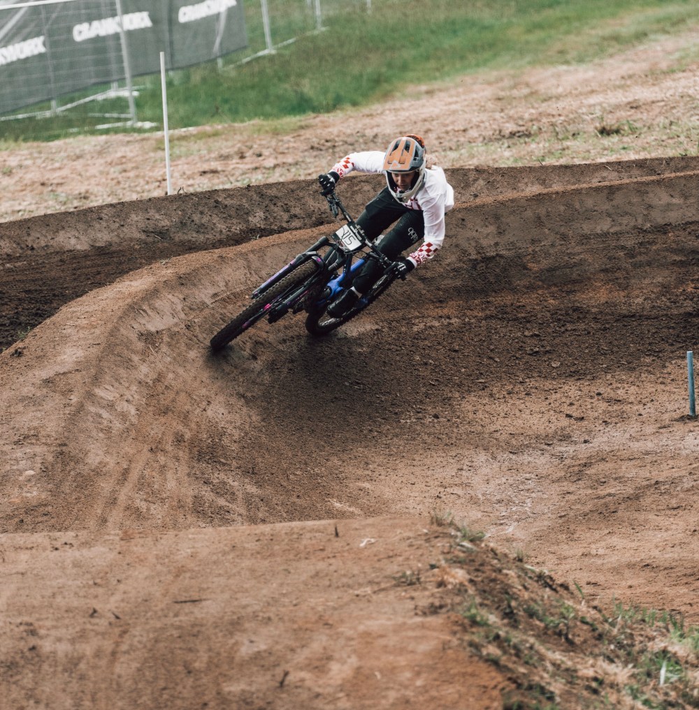 Wednesday saw the first tires touch the dirt. With two hours of practice on the downhill track, I did two runs, stopping and looking at features, trying to figure out which lines felt best, and were manageable on the trail bike. Knowing that I didn’t have a lot of suspension to play with, as well as not wanting to injure myself at the start of our summer riding season, I decided to play things cautiously, and opted for a lot of the easy, but slower lines. From midday practice on the pumptrack began, so I swapped bikes and spent a couple of hours learning how to do gates (the bmx style automatic start ramps). I had done them before in the past for 4X, but in pumptrack you aren’t allowed a chain on the bike, and trying to keep your balance without any support from the pedals is extremely difficult. In addition to this the high head winds meant that it was difficult to hold your speed on some of the straights.
