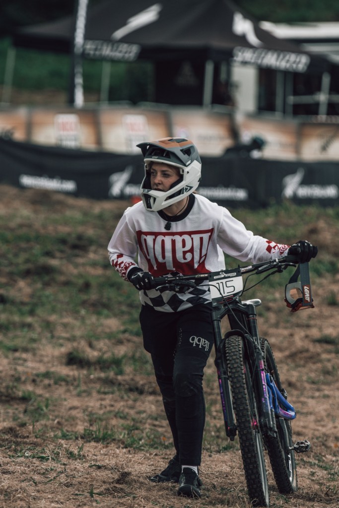 Saturday saw the final event in my race week, the Duel Slalom. By this point in the week I am already feeling pretty battered and bruised, but the Dual Slalom is always so much fun, and had a really good turn out of riders racing. Similar to pump-track, this twin track lets riders battle head-to-head in a knock out format. Once you leave the start gate you are faced with two large berms, followed by 4 rollers, or two doubles depending on how much speed you have. Two more large berms, and a couple more jumps before you reach a huge stall wall. The diggers had made this 2 foot taller than it was last year, with a lot of the girls taking quite a few attempts to get over it. On the down side of the stall wall, there were a number of gates marking out flat slalom corners towards the finish line.